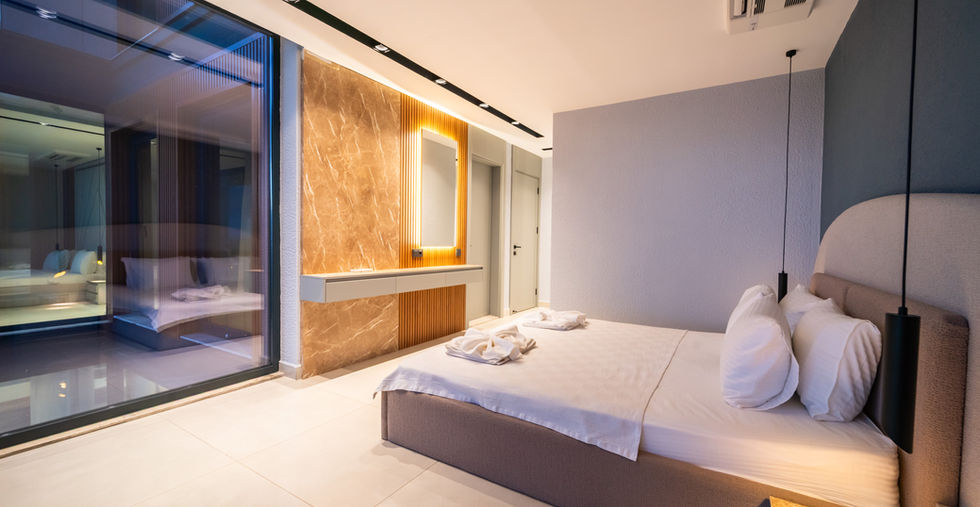 The villa features five spacious en-suite bedrooms, including a master bedroom with a private walk-in wardrobe, offering both comfort and privacy.